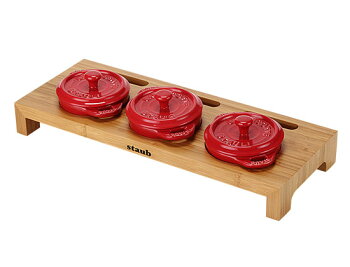 商品名ストウブ ( Staub ) ミニココット用スタンド 1190/405 カラーバンブー、ブラック サイズ長さ約42×幅約16×高さ約5cm 素材木材 商品について【ミニココット用スタンド】ミニココットラウンド 10cmに使用いただける3連スタンドです。